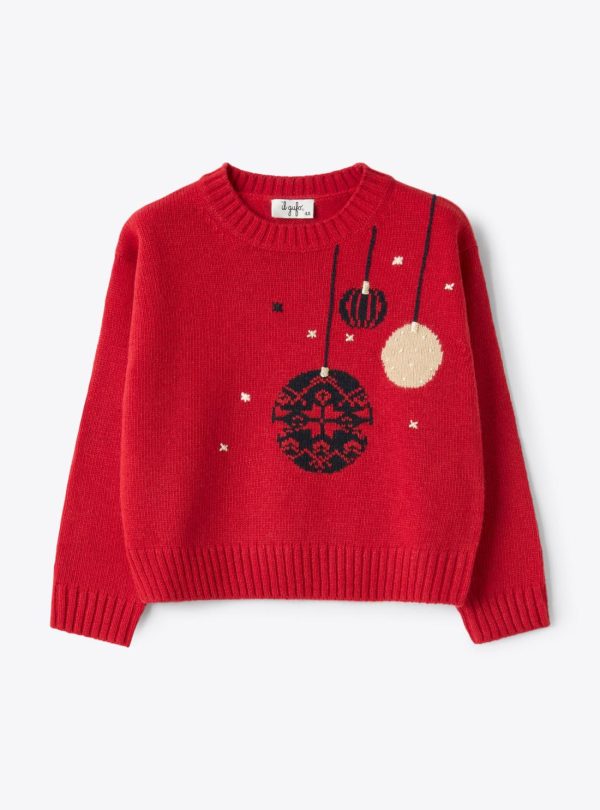 Crew neck sweater made of extra fine merino wool with a Christmas motif accented with lurex yarn. Ribbed finishes.