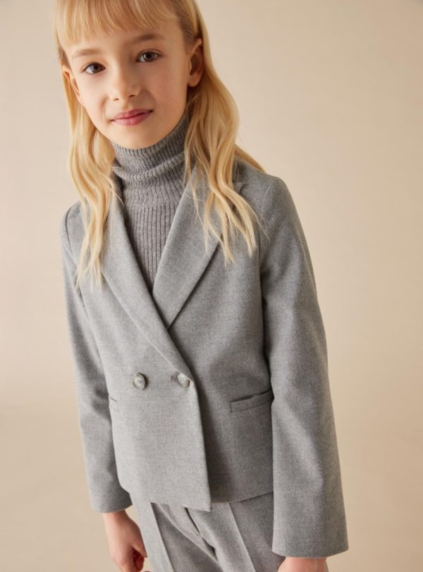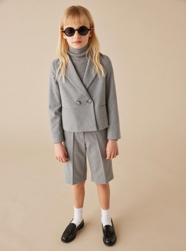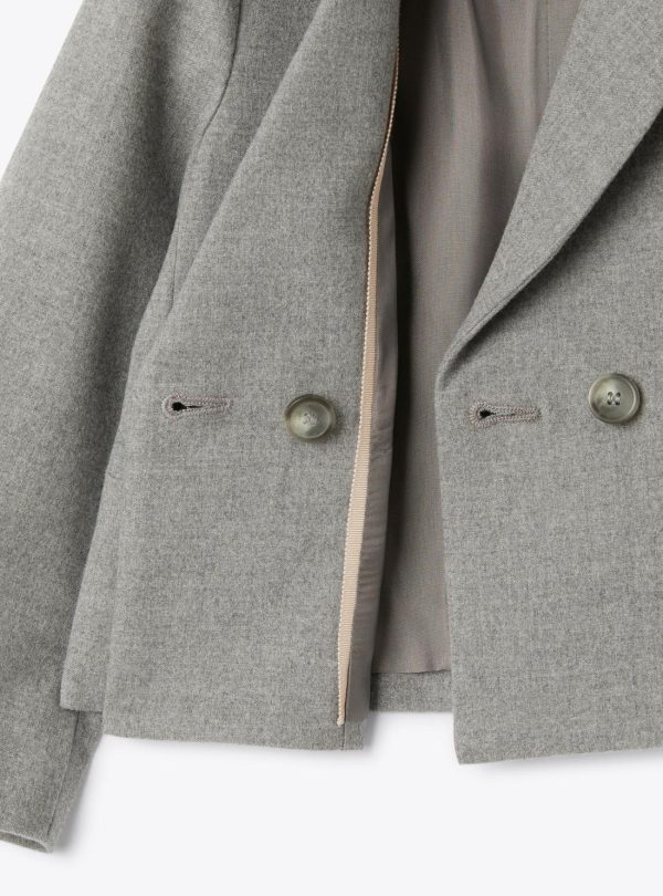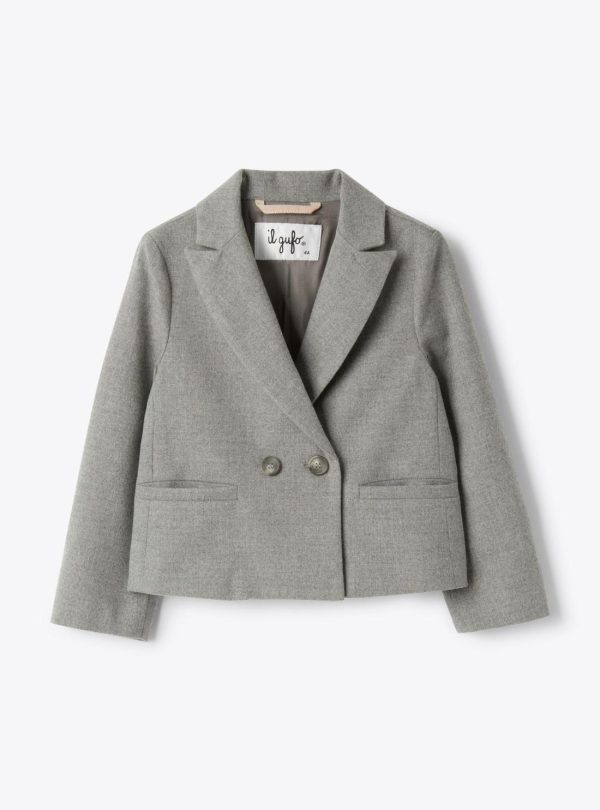 Cropped design double-breasted blazer with peaked lapels and two-button closure. Welt side pockets and internal lining in viscose blend.