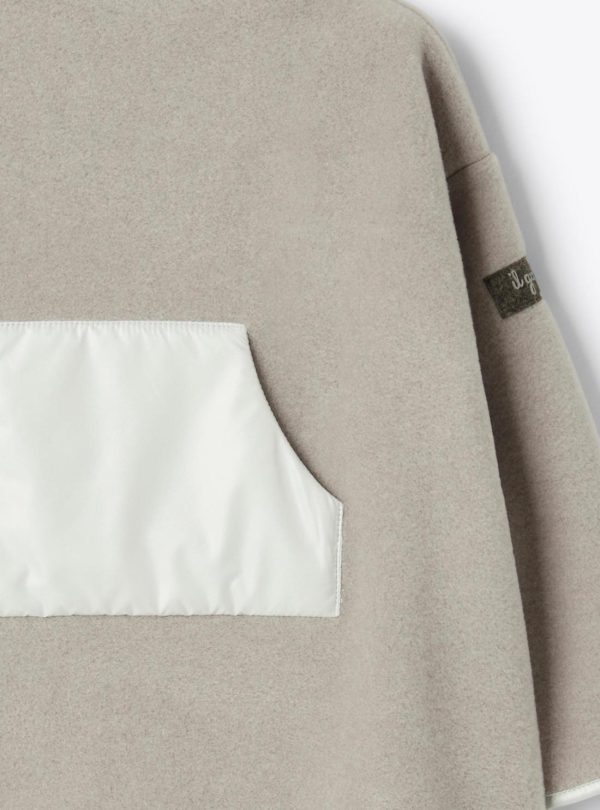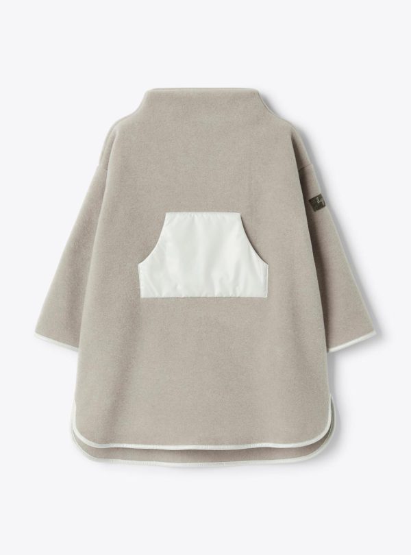 Trapeze-cut fleece dress with high collar and side slits. Front kangaroo pocket and details made of SUPER MICROFT® microfiber nylon.