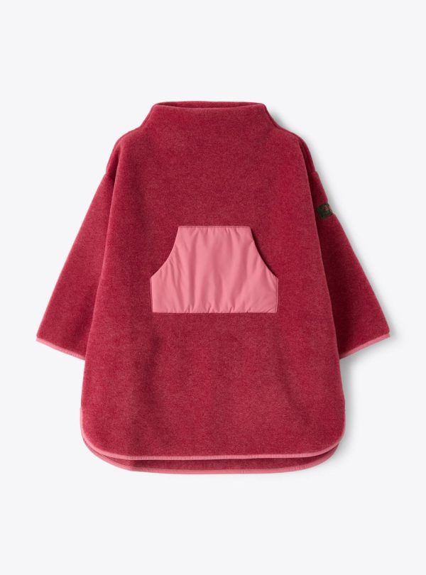 Trapeze-cut fleece dress with high collar and side slits. Front kangaroo pocket and details made of SUPER MICROFT® microfiber nylon.