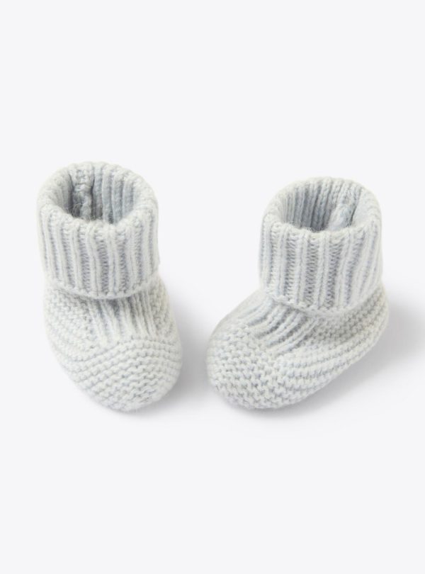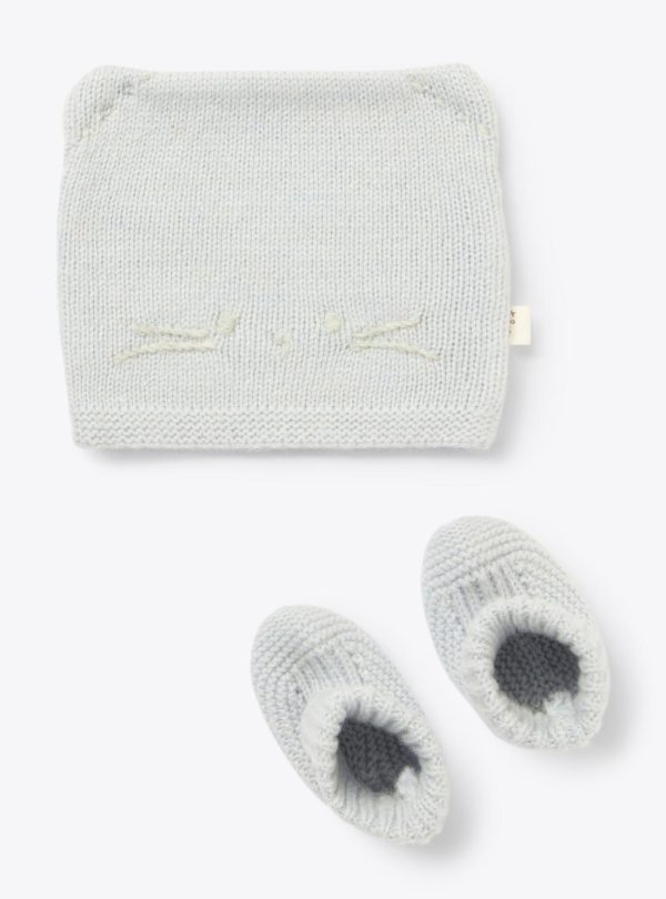 Set made with upcycled wool blend yarn, consisting of embroidered hat and shoes.