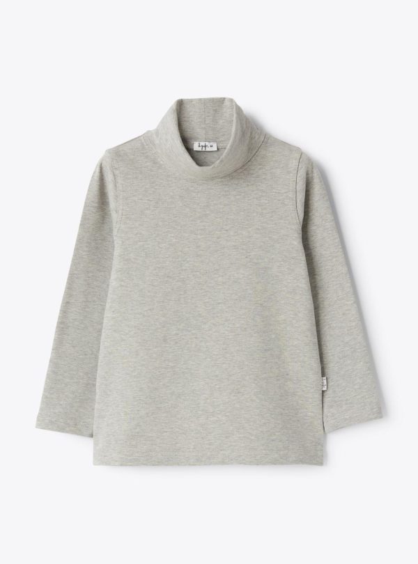 Regular fit high-neck long-sleeved T-shirt in stretch cotton jersey.