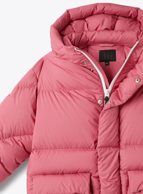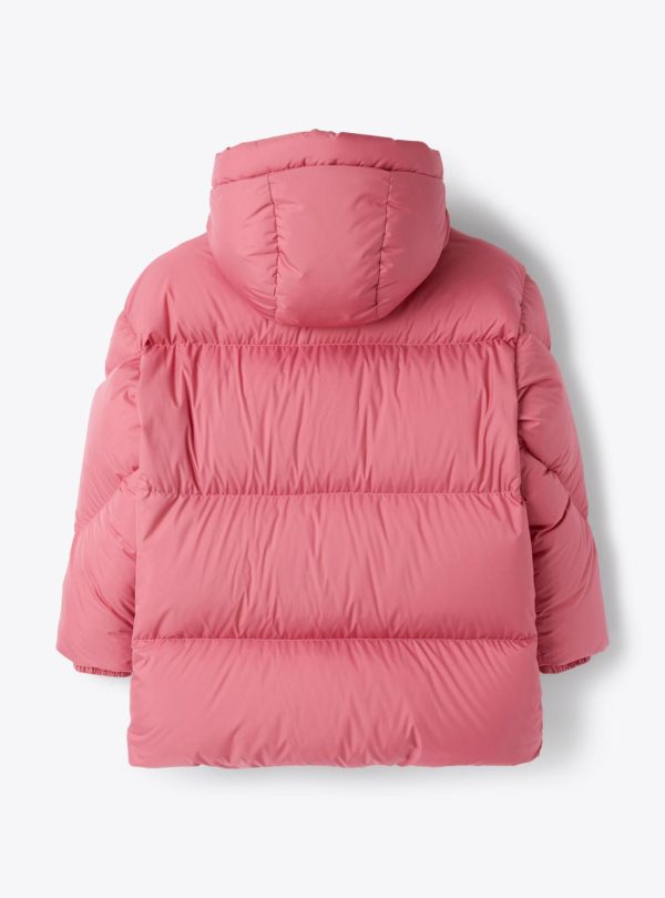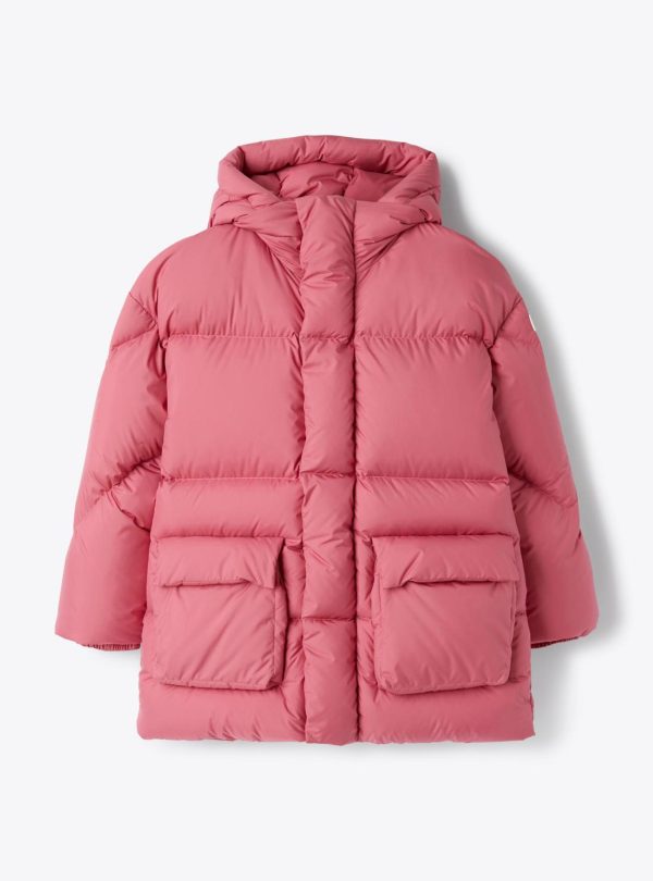 Long jacket made of SUPER MICROFT® microfiber nylon with full zip opening and snap buttons. Hood, patch pockets with snap button, and windproof cuffs. The padding is composed of 90% down and 10% feathers.