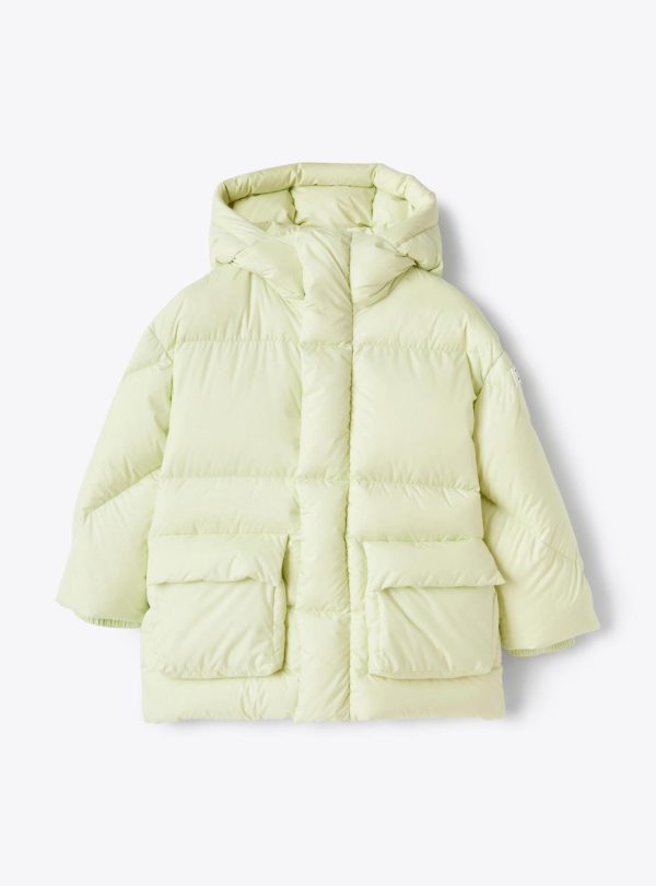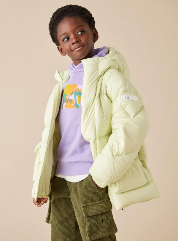 Long jacket made of SUPER MICROFT® microfiber nylon with full zip opening and snap buttons. Hood, patch pockets with snap button, and windproof cuffs. The padding is composed of 90% down and 10% feathers.