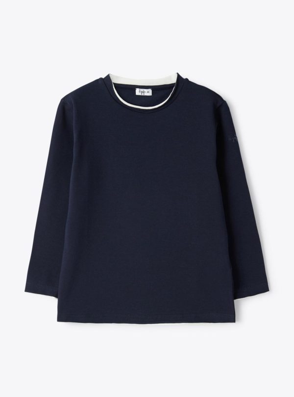 Regular fit long-sleeved T-shirt in stretch cotton jersey with double-edged profiles and raw-cut detail.