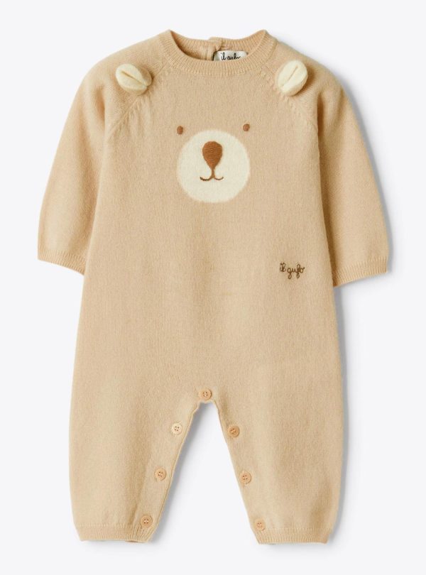 Merino Wool Jumpsuit With Bear | Baby – Il Gufo Babygrows And Two-piece Sets