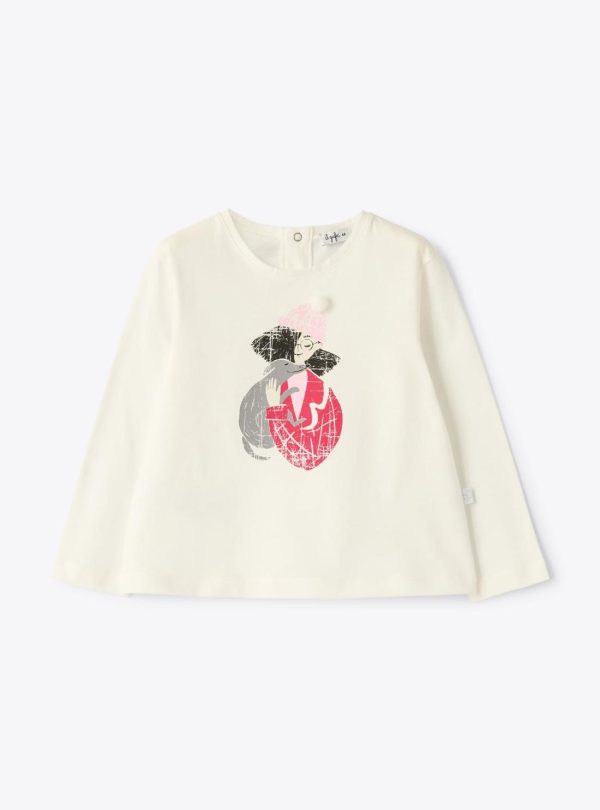 Long-sleeve cotton jersey T-shirt with front print and appliqué.