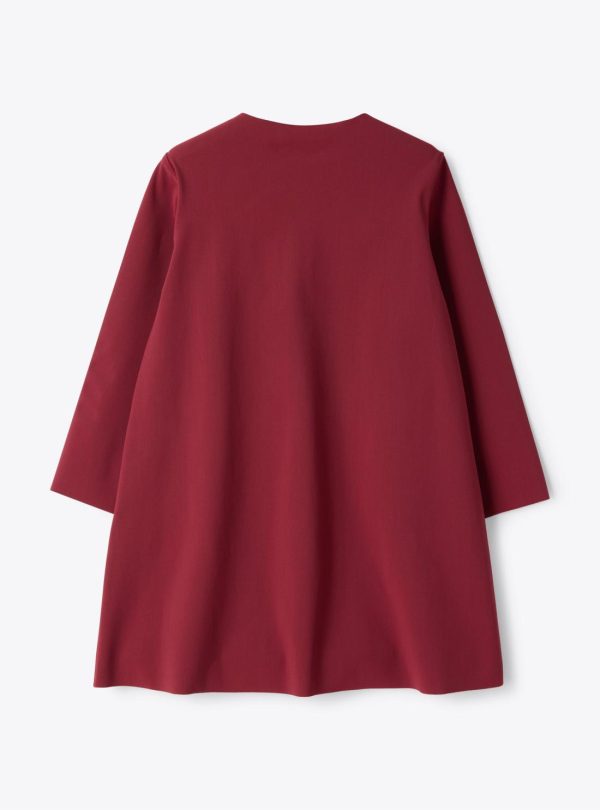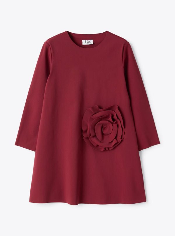 Flared dress in Sensitive® Fabrics with a large applied flower and raw edge trim.