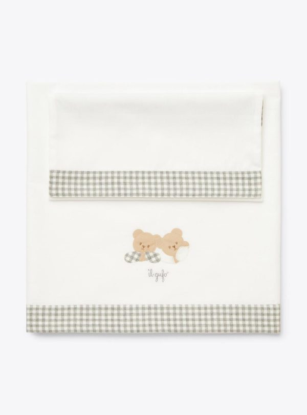 Makò cotton set with flannel checkered profiles consisting of a sheet with bear appliques and a pillowcase.