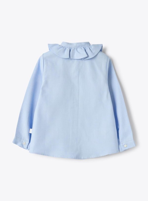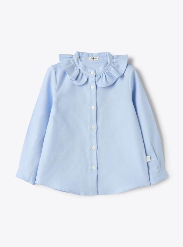 Shirt in Oxford cotton with mandarin collar and ruffles. Buttons on cuffs.