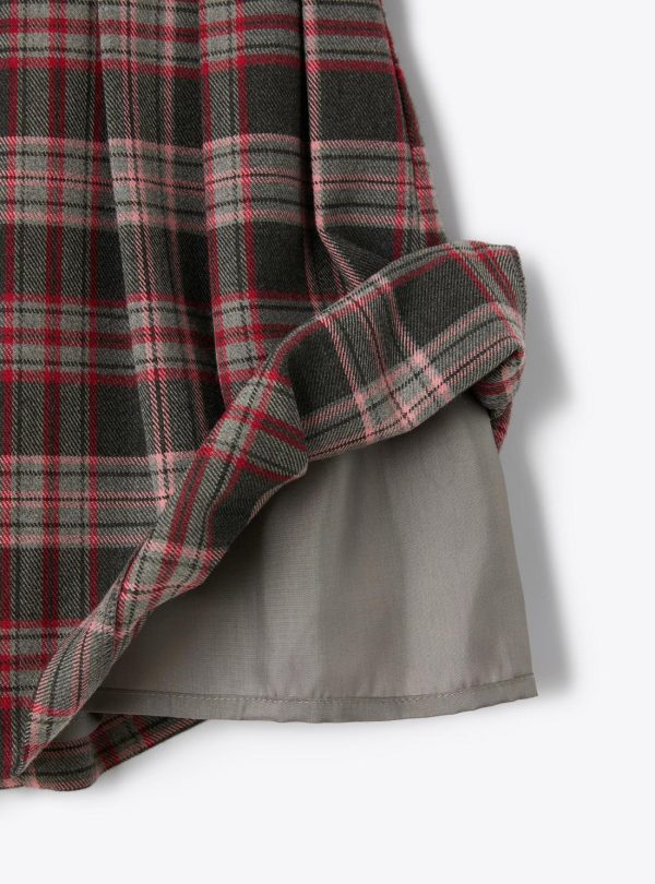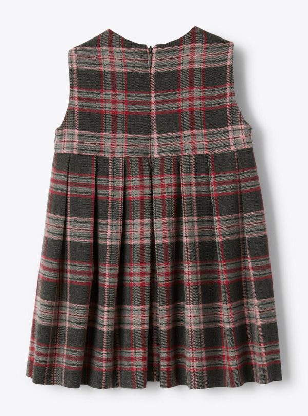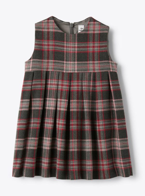 Sleeveless Scottish techno-wool dress empire cut with pleated skirt. Concealed zipper at the back and viscose blend lining.