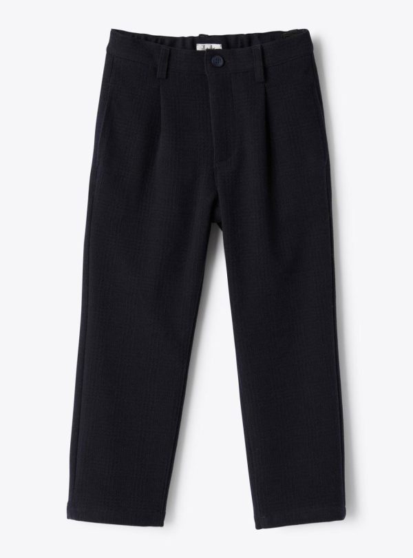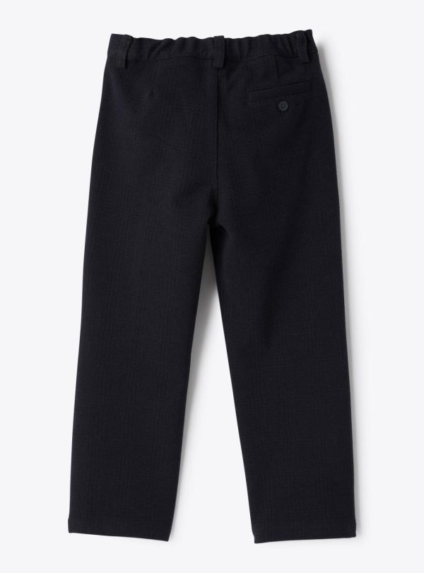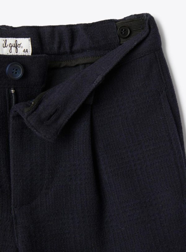 Straight leg trousers in Prince of Wales check pattern fleece. Button and zip closure, side pleats, and slash pockets. Buttoned welt pocket at the back and internal elastic for fit adjustment.