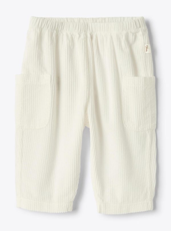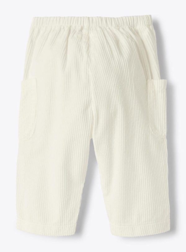 Upcycled ribbed cotton velvet trousers with elastic waistband and applied side pockets.