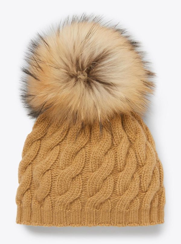 Extra fine merino wool beanie with cable knit detailing and a pompom.
