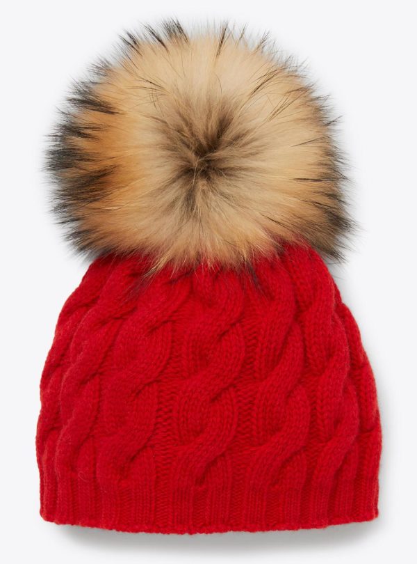 Extra fine merino wool beanie with cable knit detailing and a pompom.