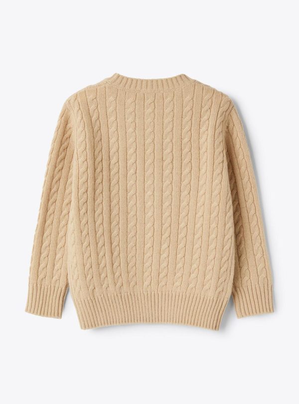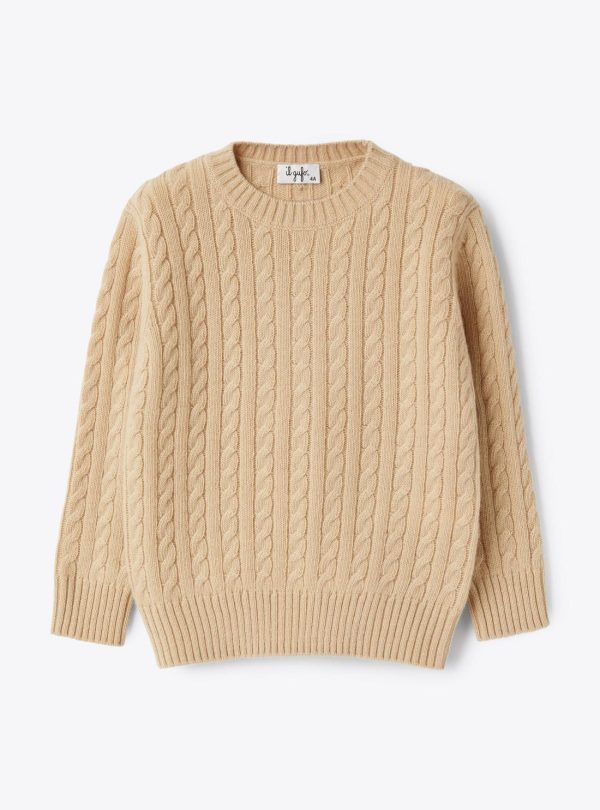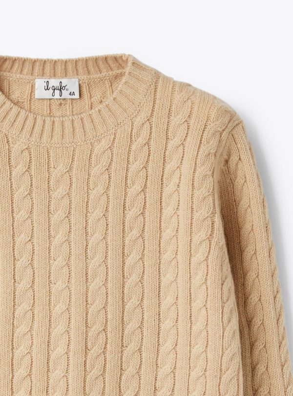 Crew neck sweater made of extra fine merino wool with cable knit pattern all over and ribbed finishes.